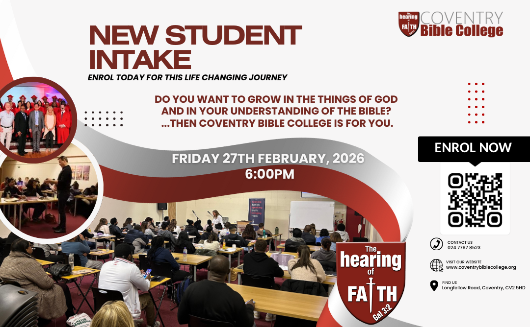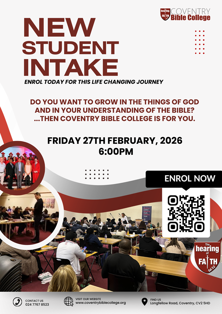 The Word of God challenges, stretches and changes lives when it is heard and received by faith and then applied. Coventry Bible College runs on a part-time basis over a period of two years. Level 1, Bible Studies Diploma, consists of 24 subjects taught with a spirit of faith.